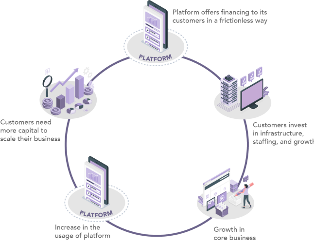 Financial services are also an effective Gross Merchandise Value (GMV) growth driver.Businesses thrive on capital, which is the primary fuel that makes businesses tick. The more you can help your customers grow, the more they will spend and transact on your platform. The more they grow, the more you grow as a result, which is the ultimate growth loop.