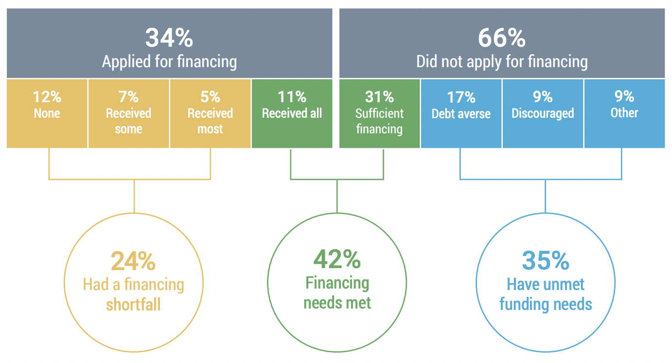 In 2021, however, only 42% of all SMBs had their financing needs met, either because they did not require any or because they received sufficient funding.